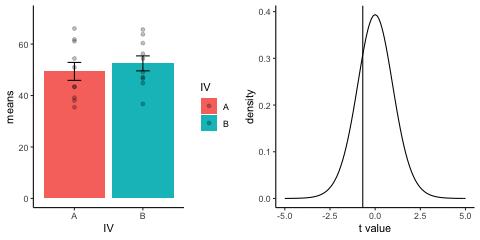 summarize(ts = t.test(DV~IV,var.equal=TRUE)$statistic)